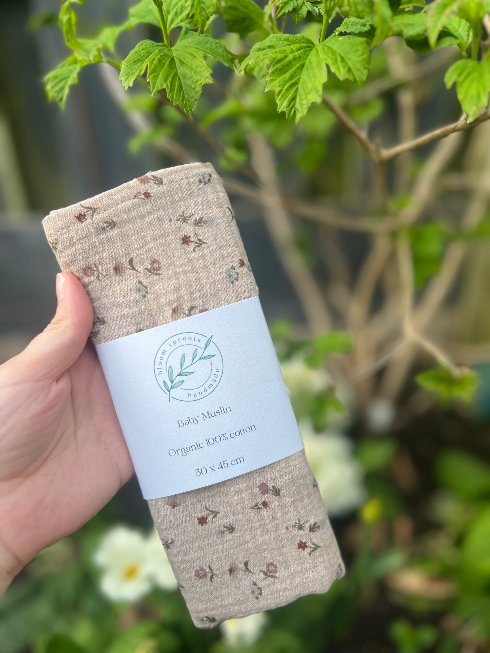 It features a lovely floral design on one side and a polka dot pattern on the other, with a gorgeous dark beige background.