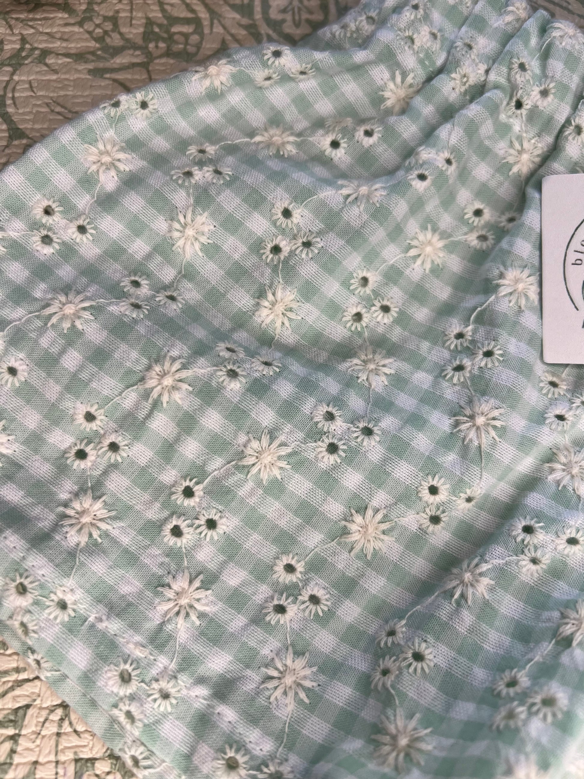 Inspired by the great outdoors, each pair features a gorgeous embroidered pattern on a lovely mint gingham background.