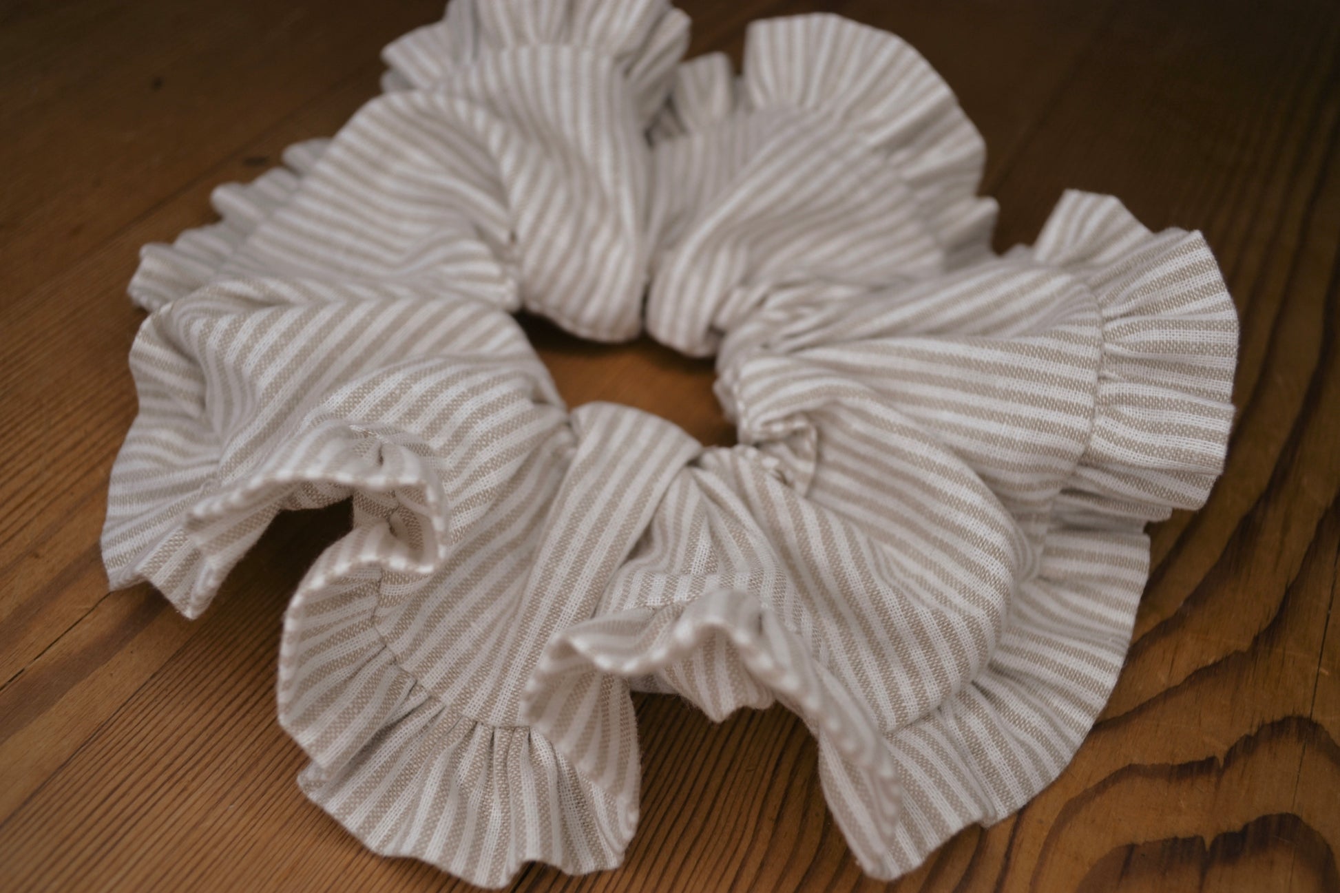 A luxury oversized ruffled scrunchie - perfect for elevating an autumnal outfit.